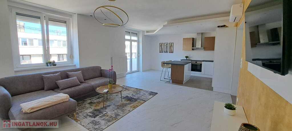 Kiadó egy különleges hangulatú, 83 m²-es, 2 hálószobás + nappalis, erkélyes, teljesen berendezett és gépesített lakás Budapest szívében, mindössze pár perc sétára a Parlamenttől és a Duna-parttól.