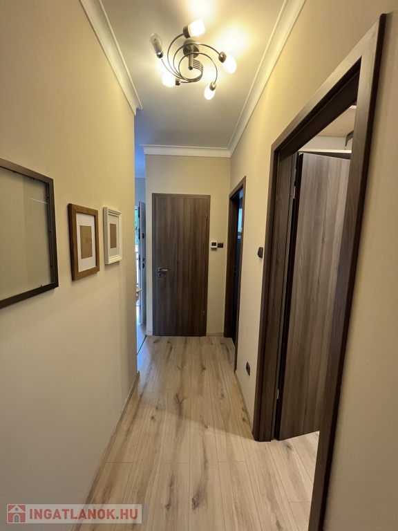 Az ingatlan kiváló elosztású: külön konyha, nappali, hálószoba, gardrób, valamint külön fürdő és WC került kialakításra. A nappaliból franciaerkély, a bejárat elől pedig saját terasz nyílik.
